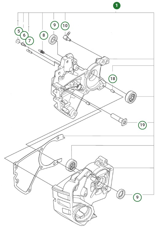 CRANKCASE ASSY TH, 39CC i gruppen Reservdelar Motorsågar / Husqvarna Motorsågar 500-serie / Reservdelar Husqvarna T540XP Mark III hos Motorsågsbutiken (5998093-02)