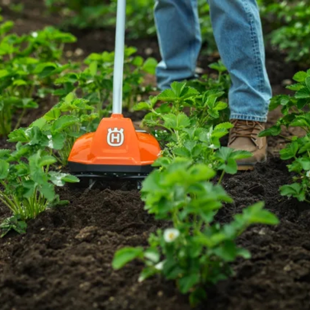 Husqvarnas batteridrivna kultivator TH 125i erbjuder exakt och skonsam kultivering för näringsrik jord och förbättrad biologisk mångfald. Den kompakta designen gör den perfekt för mindre trädgårdar, och de motroterande spiralformade klorna ger utmärkt kontroll även i trånga utrymmen och garanterar kontinuerlig drift oavsett jordförhållanden. Deras långsamma rotation är också skonsammare mot rötter och djurliv jämfört med traditionella kultivatorer. Den låga vikten och det justerbara främre handtaget ger enkel och ergonomisk hantering med minimal påfrestning på kroppen. En intuitiv knappsats med start- och stoppknapp förenklar användningen. TH 125i ingår i Husqvarnas 36 V BLi-X-system, vilket innebär att ett batteri kan användas till flera verktyg.
