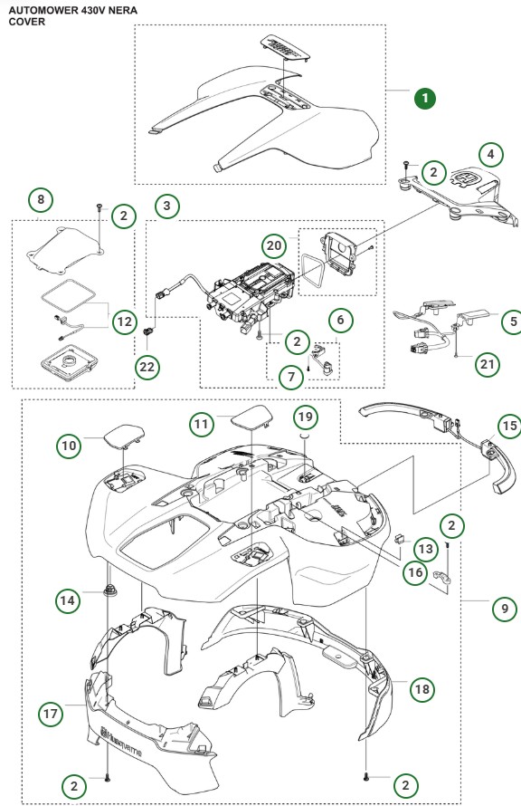• 540196901, toppkåpa till Husqvarna Automower 430V Nera
